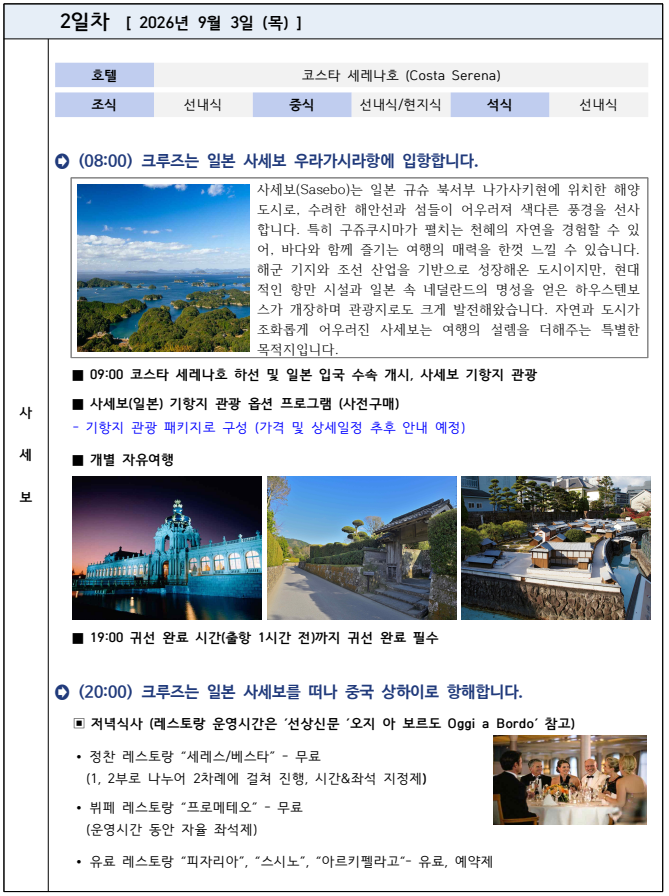 '코스타 세레나호'로 떠나는 4박 6일 한국, 중국, 일본 크루즈 삼국지